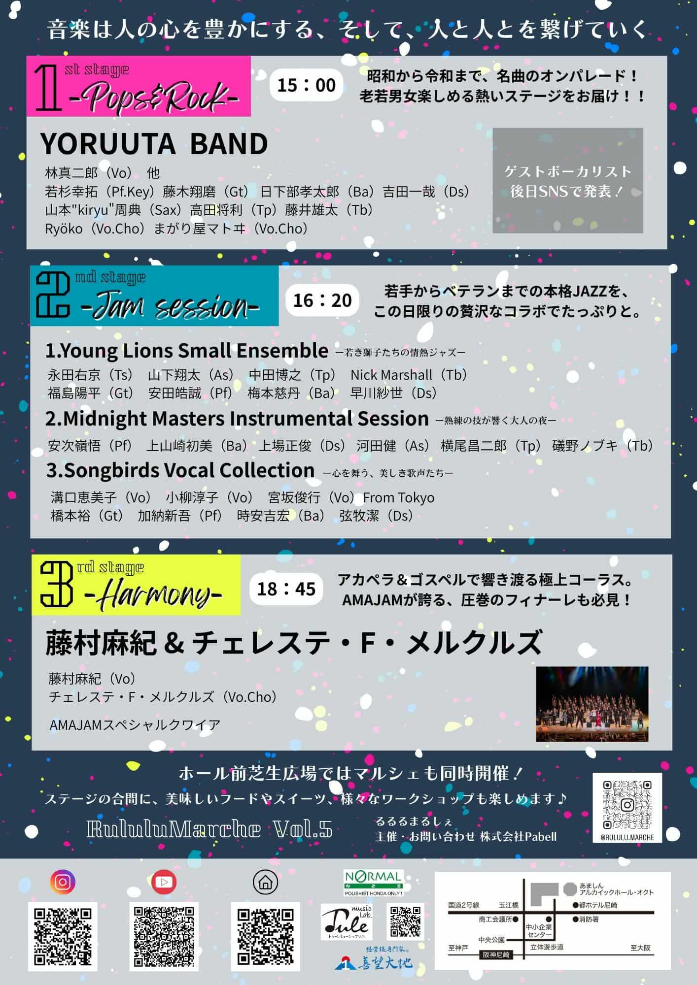 〇主催:株式会社Pabell (公財)尼崎市文化振興財団 〇企画・運営 株式会社Pabell イベント事業部 AMAJAM 〇協賛:Tule music Lab. / 株式会社Normal / 株式会社喜望大地 他 〇後援:尼崎市